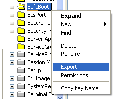 - Select the Safeboot registry file you exported and Merge it to the registry (double click the file)