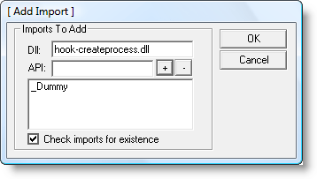 Programs have a list of DLLs they need for their execution. We will use a PE-file editor to add our hook-createprocess.dll to this list. hook-createprocess.dll exports a dummy function (_Dummy) just so you can add to the imports table of an executable. We will use LordPE to add hook-createprocess.dll with _Dummy to Adobe Reader: