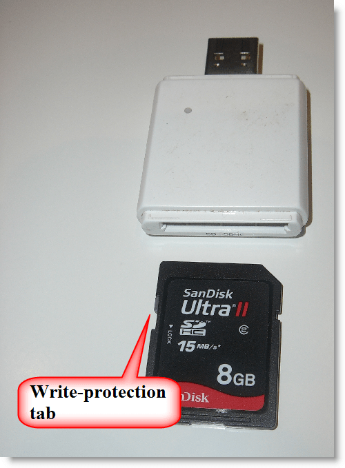 But last time I got a surprise: when testing a new SD card reader, I was able to write to the write-protected SD card. Turns out that this particular SD card reader doesn’t support the write-protection tab and always allows the OS to write to the SD card.