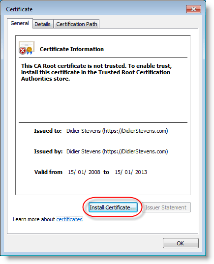 If you want to install certificates for all users, you’ll need to follow another method. But because this other method requires a certificate file, I’ll show you how to extract a certificate file from an AuthentiCode signature: