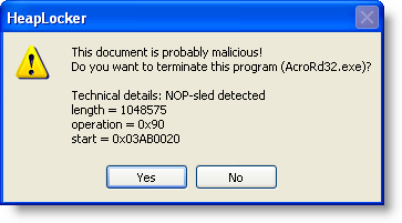 I’ve had some false positives with this detection, that’s why you can configure HeapLocker to ask the user for confirmation.