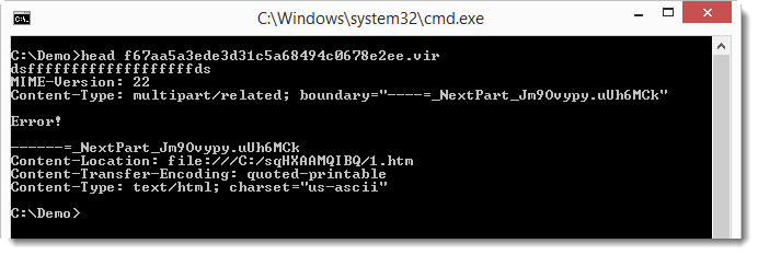 Malicious MS Office documents are also distributed as MIME files. A blog reader asked for help with a MIME file that gave him problems: f67aa5a3ede3d31c5a68494c0678e2ee.