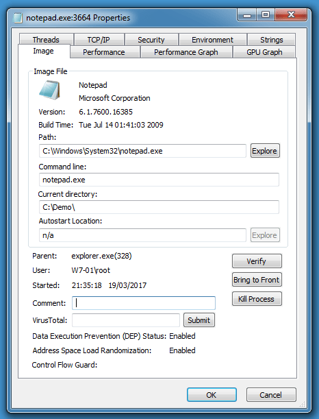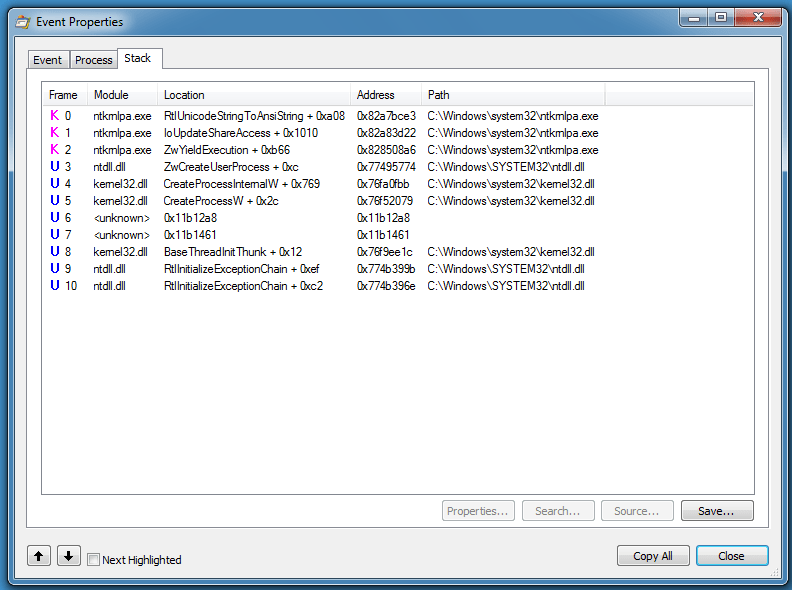 We should see entries in the call stack for explorer.exe if notepad.exe was started by explorer.exe, but we don’t.