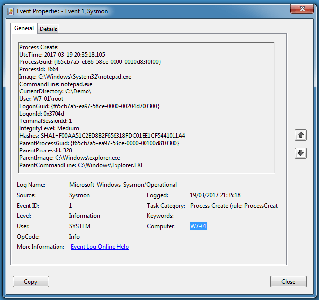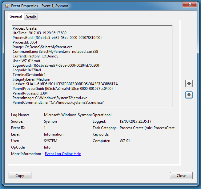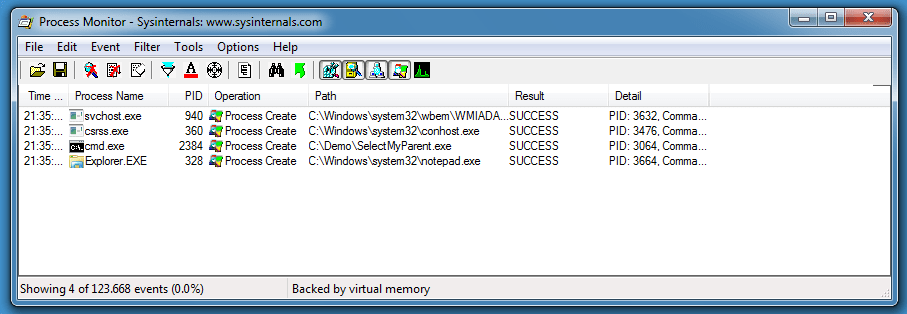 System Monitor also reports explorer.exe as the parent: