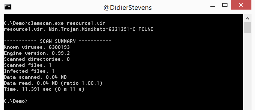While updating my Petya/Notpetya notes, I saw that ClamAV now detects resources 1 and 2 (zlib compressed PE files) as Mimikatz. Curious about how they detect Mimikatz, I wanted to take a look at the signature. I’ve done this before, but I forgot exactly how. So here is a blog post to remind me next time.