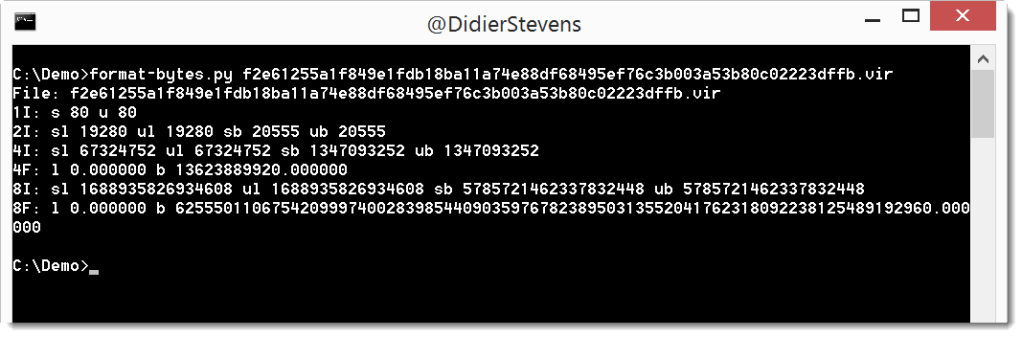 I needed a tool that can interpret bytes as various integers, so I came up with format-bytes.py: