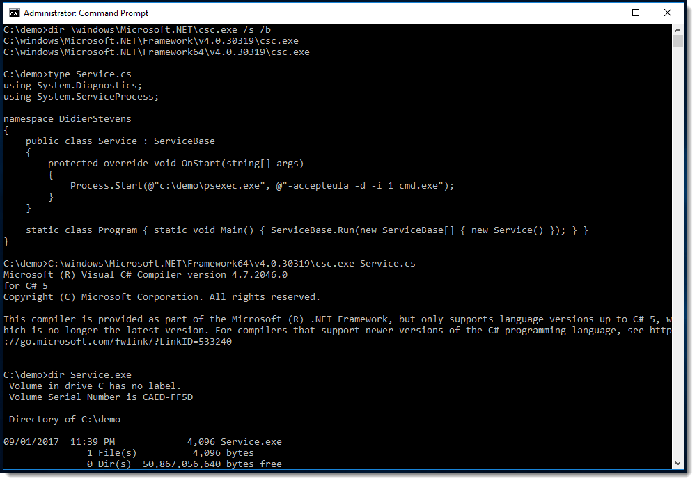 Pingback by Compiling a Windows Service With Mono on Kali | Didier Stevens — Wednesday 6 September 2017 @ 0:00