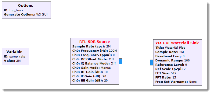 If you installed GNU Radio and want to know how to create the Flow Graph I used to test my SDR, follow along: