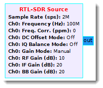Hover with your mouse over the blue port of block “RTL-SDR Source”, the word “out” will appear: