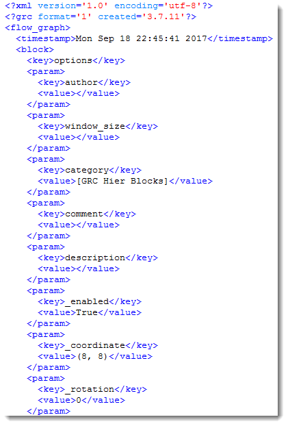 Notice that the ID is “top_block” (that’s the default), and that the Generate Options is “WX GUI” (QT GUI is the default).