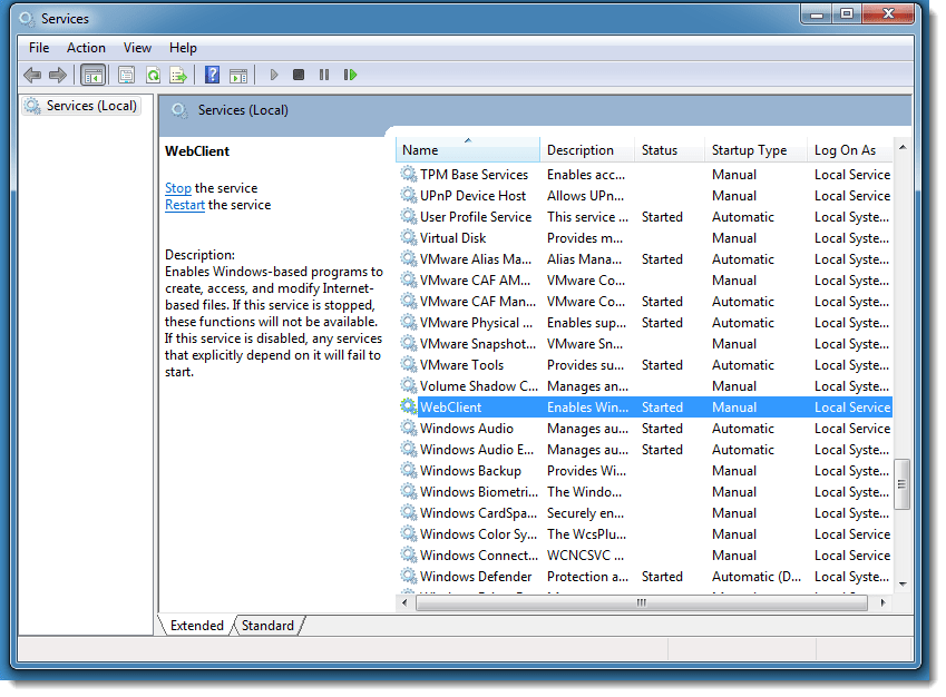 - WebClient service (Microsoft-WebDAV-MiniRedir/6.1.7601)