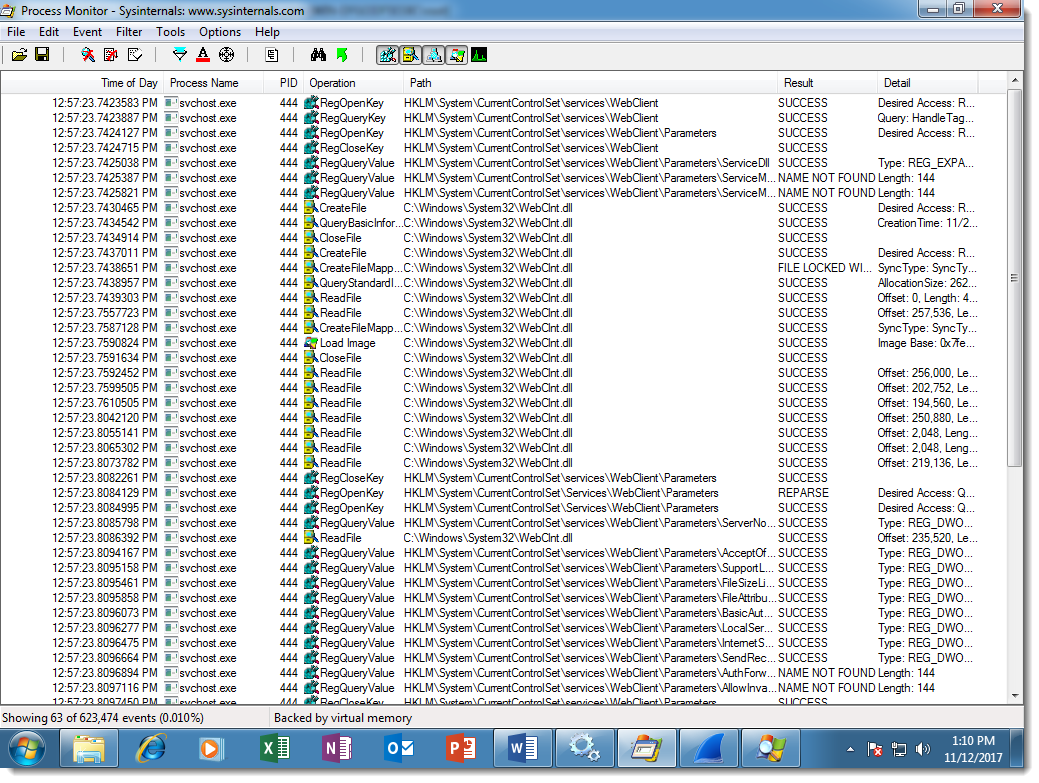 When the document is opened a second time, there is no WebDAV request from Word (1), only requests from the WebClient service (2).