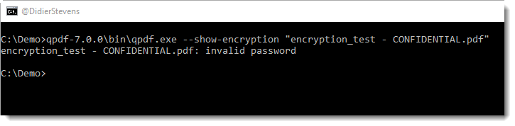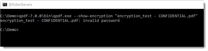 This output (invalid password) tells us the PDF document is encrypted with a user password.