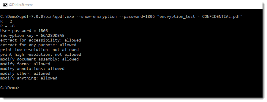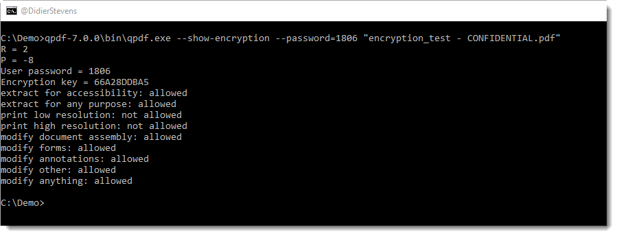 Here is how I decrypted the “easy” PDF (encryption_test).