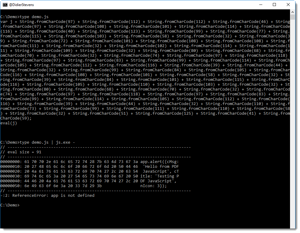 It’s also possible to provide JavaScript scripts for parsing to SpiderMonkey via STDIN. You can pass filename – to js for processing STDIN input: