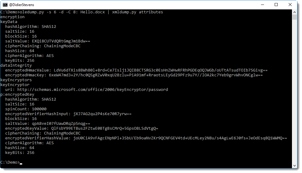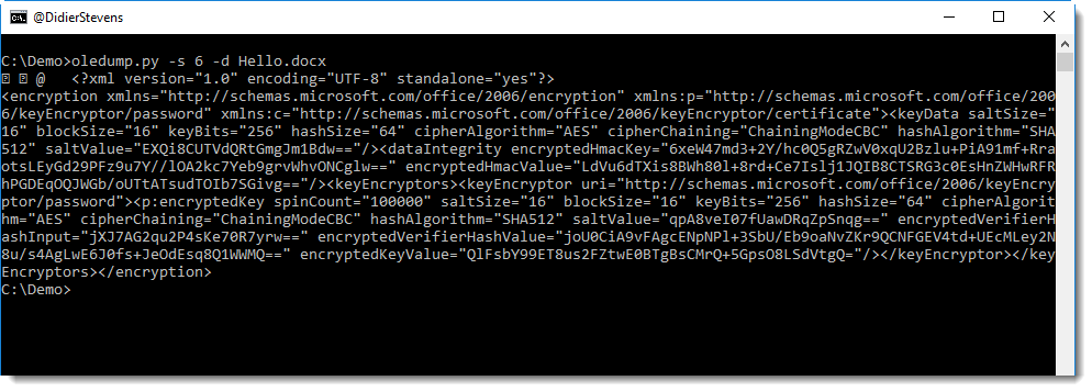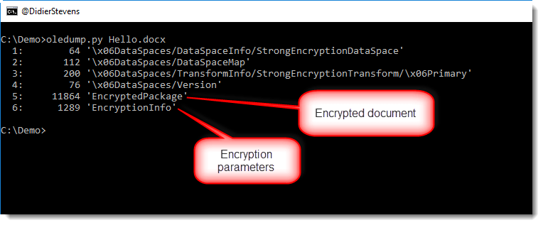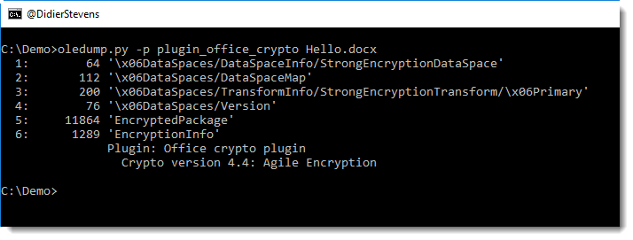 This is how an encrypted .docx file looks like, when analyzed with oledump: