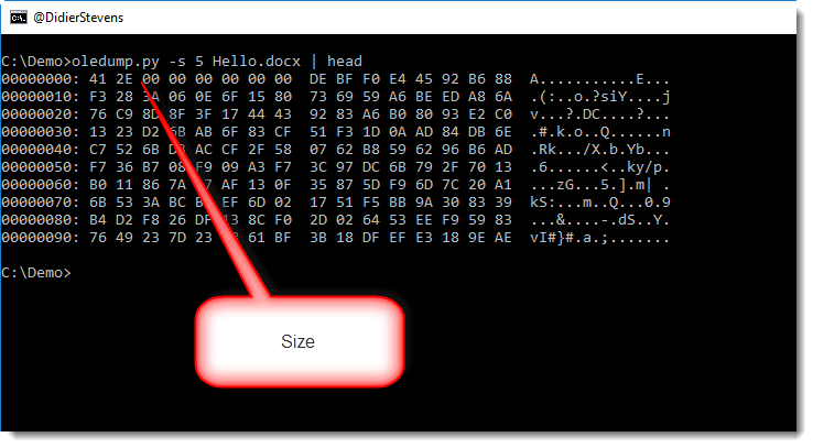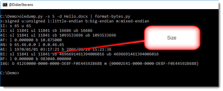 First there’s an integer with the size of the encrypted document, followed by the encrypted document. If we decode the binary data for the integer with format-bytes.py, we get the size 11841: