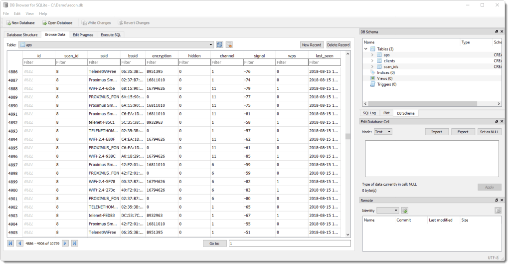 The WiFi Pineapple’s recon DB (recon.db) is volatile, because it is stored (by default) in the /tmp folder.