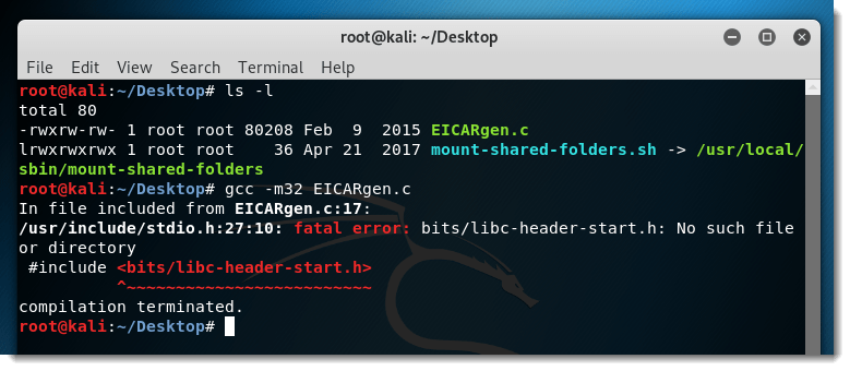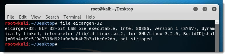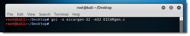 Here I compile EICARgen on Kali Linux to a 32-bit, statically linked Linux executable.