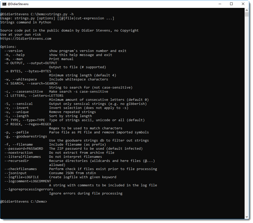 -L (–length) is an option I use often: it sorts the extracted strings from shortest to longest. When analyzing malicious documents and (binary) malware, often the interesting strings are rather long.