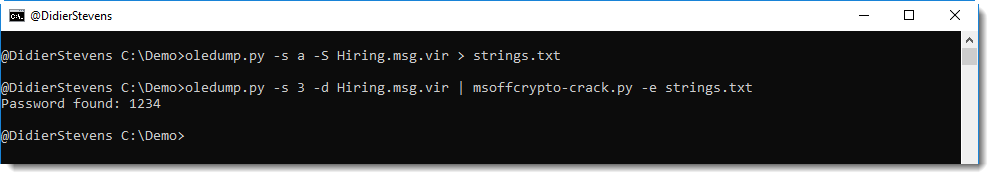 Works wonders for the old binary format, but it doesn’t quite work for the ooxml format? I’ve noticed the library required works for all Office Open XML formats, but the script keeps returning the password as being either 123456 or infected (I’ve tested with an xlsx file with the password VelvetSweatshop and with a docx file with the password rocky, both passwords are in the wordlist).