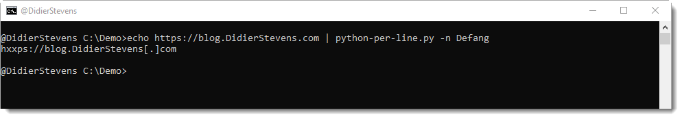 If you just want to apply a function to each line, you don’t have to type a full expression like in the example above (Defang(line)).