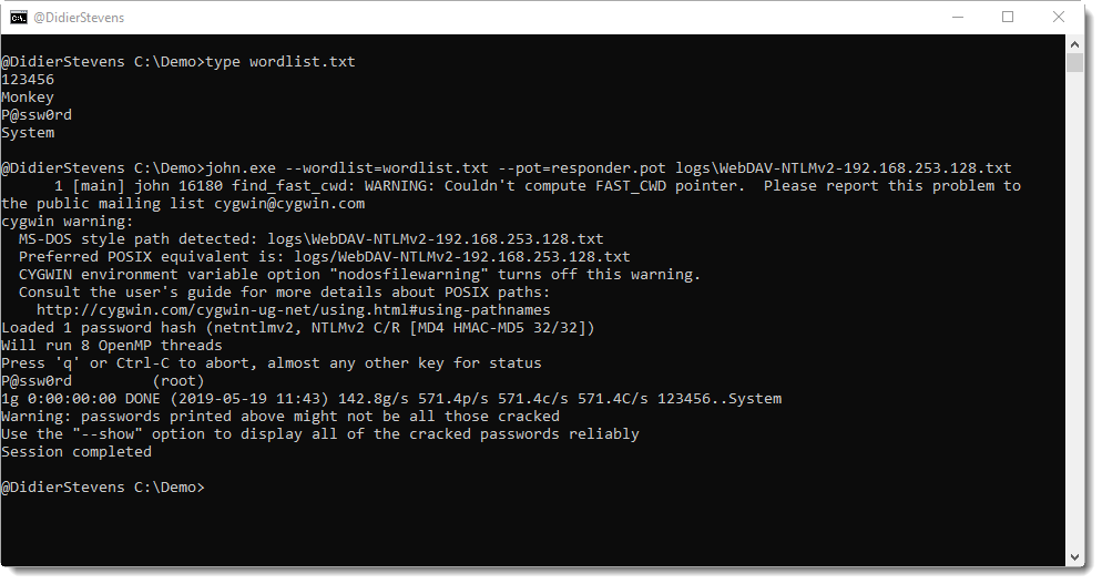 This can of course be cracked (if the password is not too complex), with John The Ripper for example: