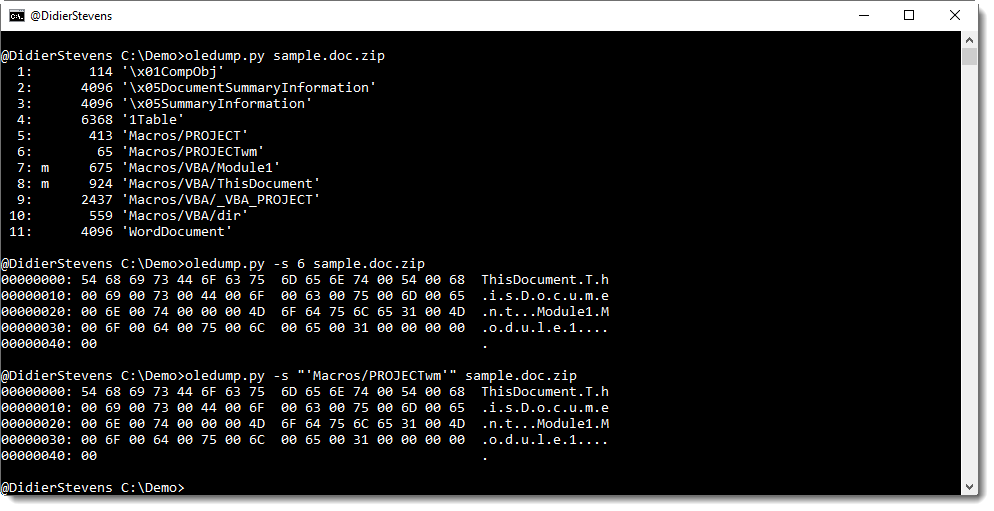 This new version of oledump.py has bug fixes, updates for -s and –raw -v options, plugins, and a bug fix for plugin_vbaproject.