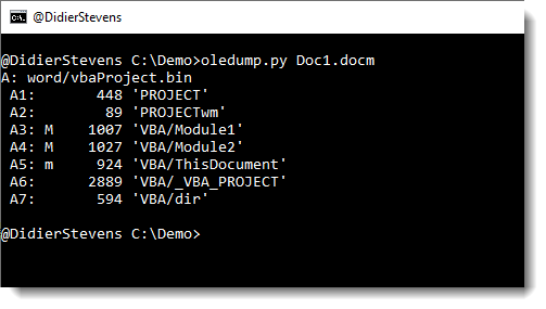 Each stream and storage can have an indicator in oledump.py‘s output: