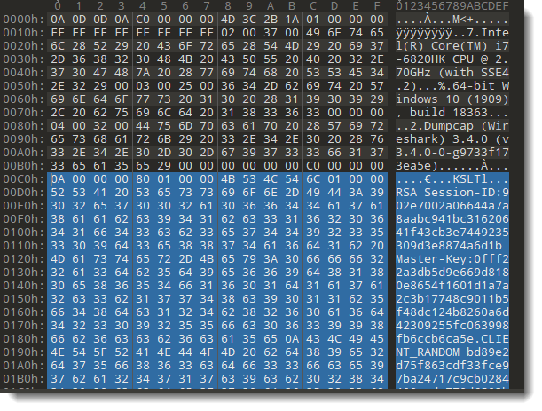 The content of the file that was created (tls.keys) looks very similar to the SSLKEYLOGFILE we generated in part 2: