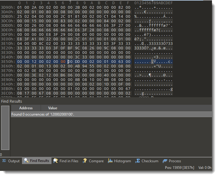 We can see that there are several records, and that their data is all NULL (0x00) bytes.