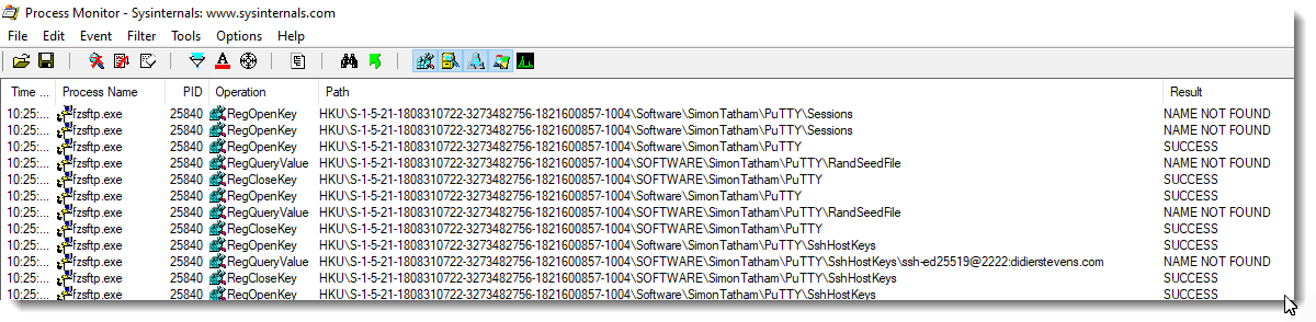 Then I’m taking a look with ProcMon to figure out where FileZilla caches its fingerprints. After some searching, I found the answer: