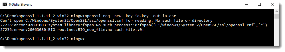 Even if we run openssl.exe in the same folder as openssl.cnf.