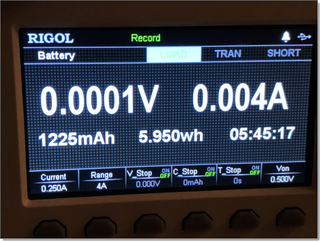 And it delivers 5.95 Wh when I discharge it (5V at 0.250 mA).