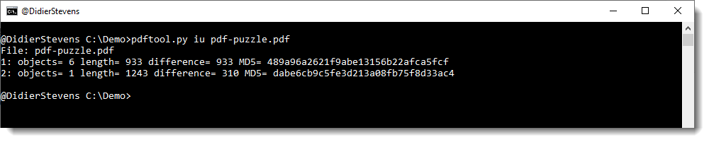 pdftool.py is a tool that takes commands. This first version has only one command: iu (incremental updates).